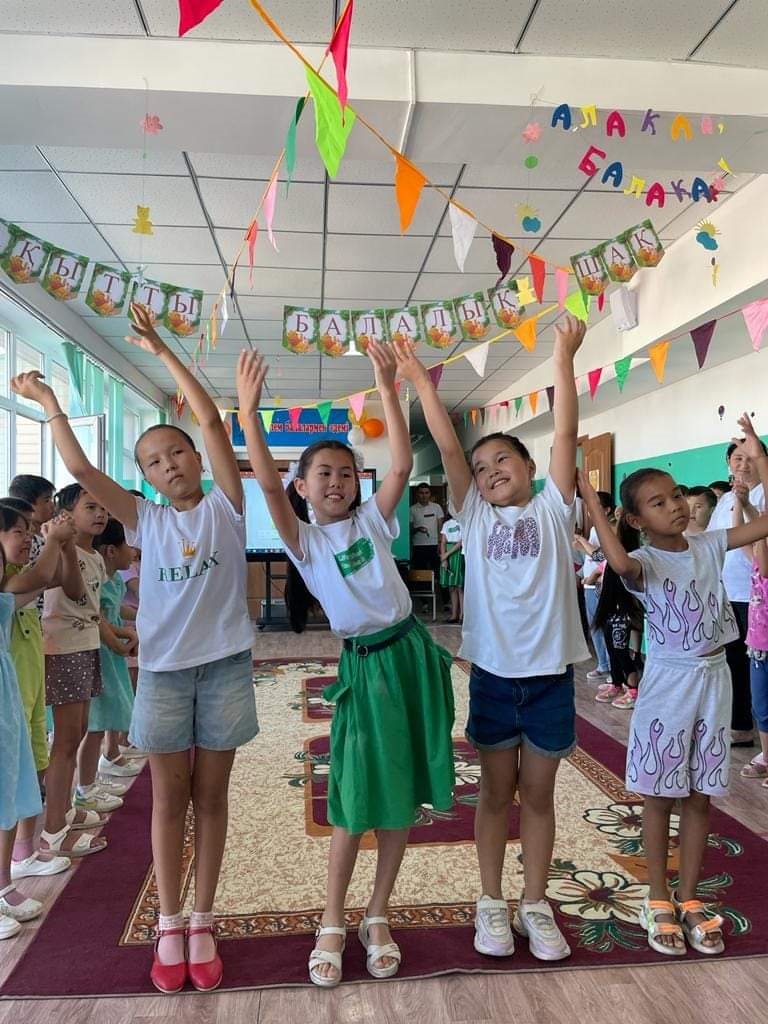 Мерекелік іс-шара лагерь қатысушыларының көңілді флешмобы мен тәтті балмұздақтар таратылуымен, сондай-ақ “Біз жүйрікпіз, шапшаңбыз” эстафеталық ойындар мен “Бақытты балалық шақ балғын бояумен” асфальтке сурет салу мен жалғасын тапты.